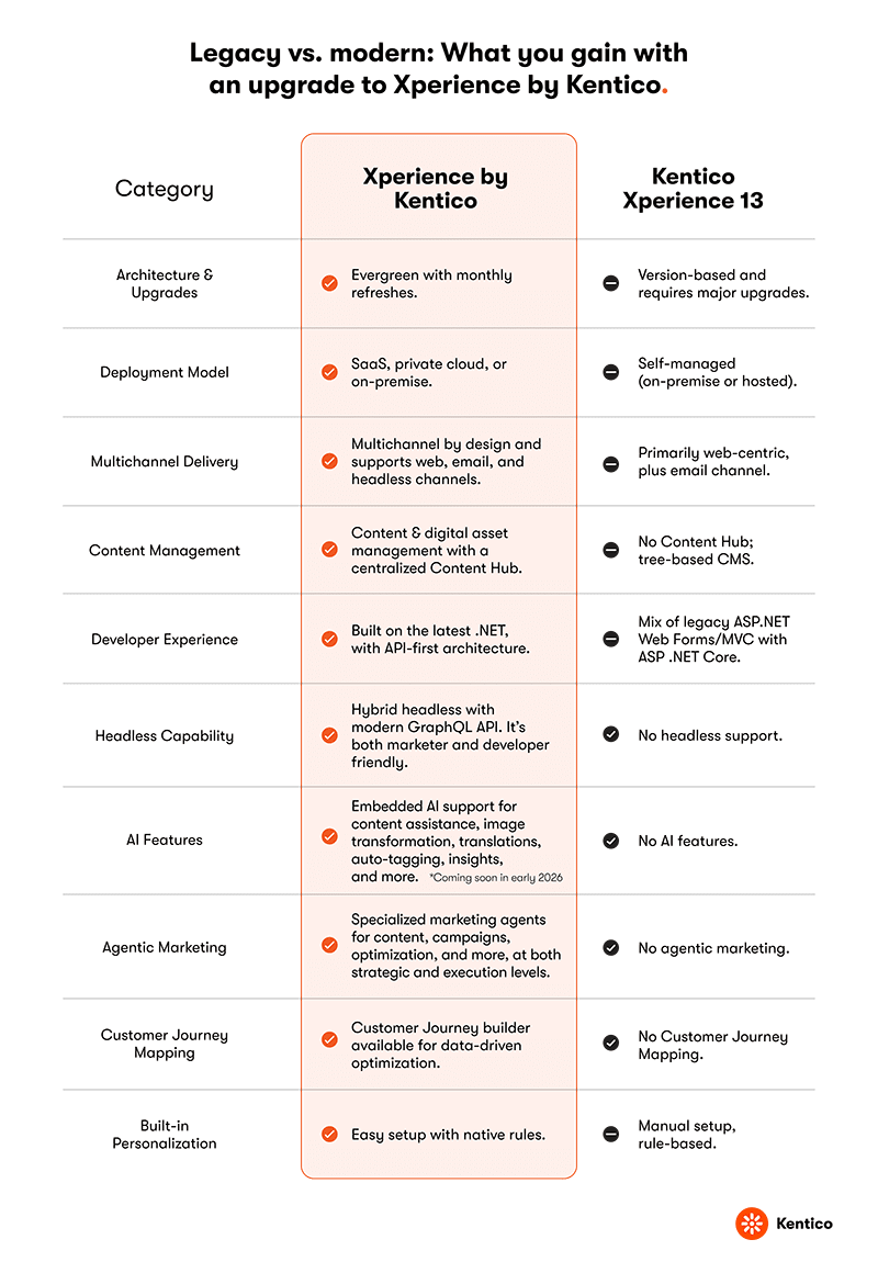 With Xperience by Kentico, you’re not just upgrading your CMS; you’re investing in a modern, agile, and efficient way to run your digital marketing operations: