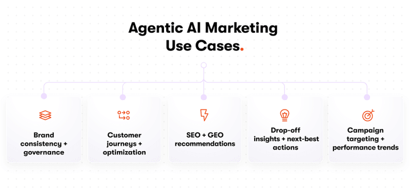 From improving customer journeys to optimizing content, here are five practical use cases for agentic AI in marketing to help your team get started.
