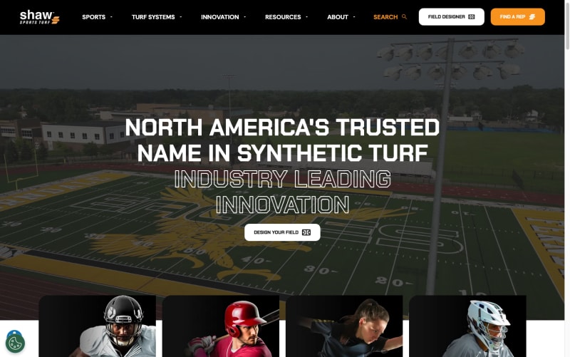 Shaw Sport Turf created a genuinely engaging and helpful customer journey. The Field Designer adds gamification to explore options, while strong visuals, video, and deep technical content support inspiration and decision-making. Practical tools like find a representative, structured inquiry forms, and clear product exploration help customers find exactly what they are looking for.