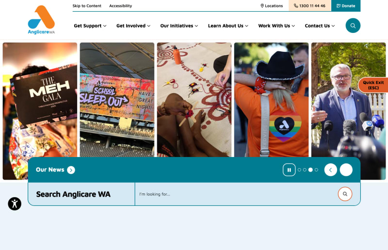 Anglicare WA’s new site reflects the compassion of their work. It supports a wide range of community needs, like homelessness, family support, and financial counseling, clearly organized in the main navigation. The custom Services Directory is a standout feature, enabling users to quickly find relevant help using filters and search tools.
