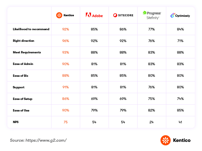 In the G2 Winter 2026 Grid Report, Kentico earned Leader status in the Digital Experience Platform (DXP) category, supported by standout customer satisfaction ratings and consistently high usability scores.