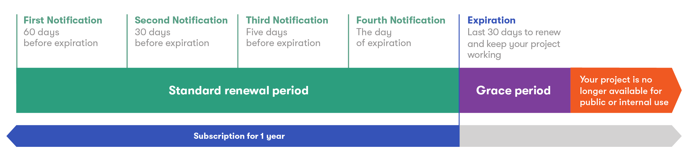 Under the Subscription License Model, customers receive a notification of expiration one month ahead, five days ahead, and on the day of expiration. Customers must pay for the subscription before the expiration date, otherwise the front-end of the website will be no longer available.