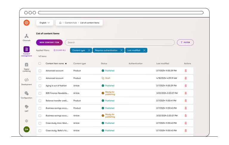 Plan, create, and deliver structured content from a centralized hub, publish across channels, keep it organized with smart tools, control it with workflows and search, localize for any language, and build personalized pages and forms.